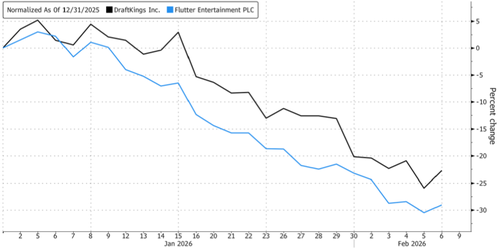 - Gambling Stocks Slide Ahead Of Super Bowl As Prediction Markets Shineby Tyler Durden on February 8, 2026 at 8:45 pm