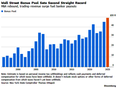 Wall Street Bonus Pool Hits Record Despite "Domestic And International Upheavals"As the K-shaped economy rages on, gasoline and diesel prices at the pump spike, and risks of food inflation later this year mount, Wall Street's bonus pool surged to a record in 2025, even as the Trump administration insists the inflationary shock is temporary. […]